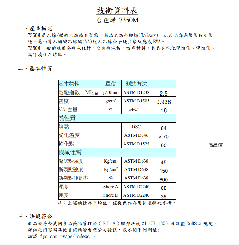 品名 :乙烯醋酸乙烯共聚物 EVA