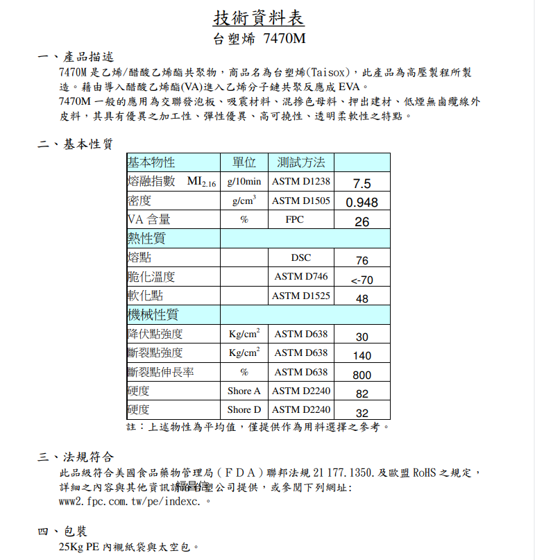 品名 :乙烯醋酸乙烯共聚物 EVA